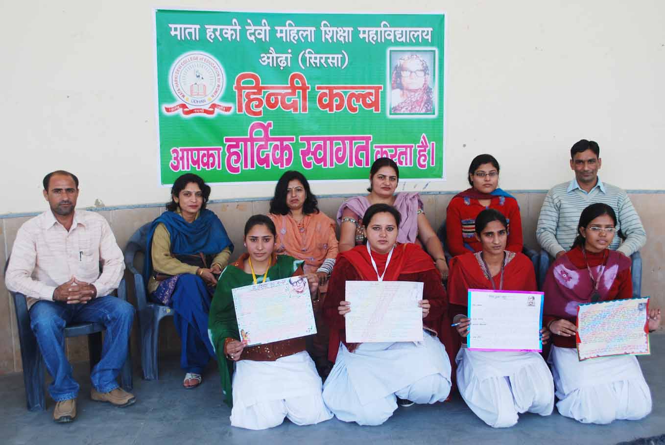 माता हरकी देवी शिक्षण महाविद्यालय ओढ़ां में हिंदी साहित्यिक क्लब द्वारा छात्राध्यापिकाओं में पोस्टर मेकिंग प्रतियोगिता का आयोजन किया गया जिसमें विद्यार्थियों ने बढ़ चढ़कर भाग लिया। प्रतियोगिता का आयोजन हिंदी अनुभाग के इंचार्ज डॉ. रघुवीर सिंह व प्रवक्ता कृष्णकांत की देखरेख में किया गया जिसमें छात्राध्यापिकाओं से हिंदी साहित्य के कवियों के जीवन वृत विषय पर पोस्टर बनवाए गए। इस अवसर पर प्राचार्या सुनीता स्याल ने अपने संबोधन में कहा कि महाविद्यालय में इस प्रकार के आयोजन होते रहने चाहिए ताकि विद्यार्थियों का सर्वांगीण विकास हो सके। इस प्रतियोगिता में माता हरकी देवी कन्या महाविद्यालय की उपप्राचार्या डॉ. अनीता व सीनियर सैकंडरी स्कूल की उपप्राचार्या विजयलक्ष्मी ने निर्णायक मंडल की भूमिका निभाई जिसके अनुसार हरजीत को प्रथम, नीतू को द्वितीय एवं ओशीन को तृतीय घोषित किया गया। अंत में जेबीटी के प्राचार्य सुभाषचंद्र ने छात्राध्यापिकाओं को उनके शानदार प्रदर्शन पर बधाई देते हुए उनके उज्जवल भविष्य की कामना की।